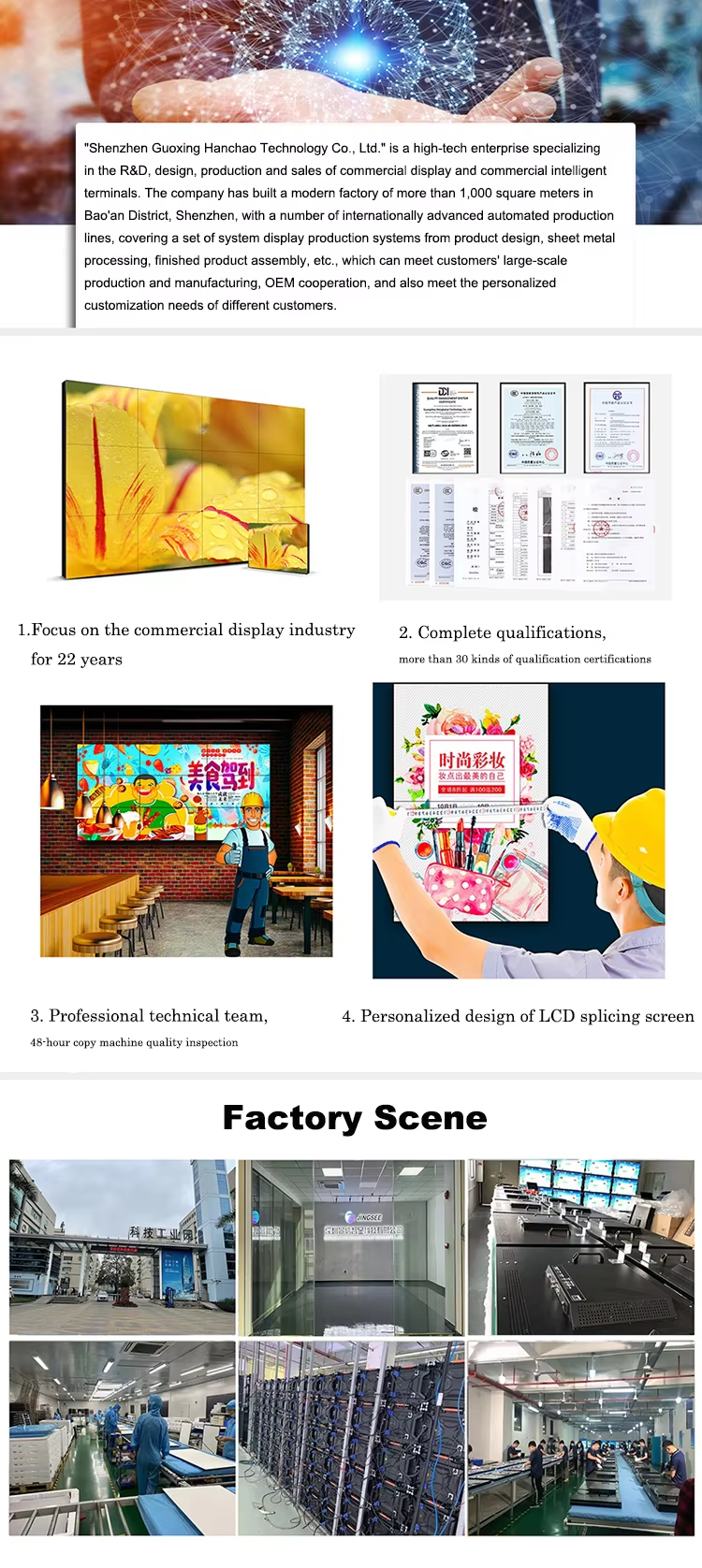 | Model | 55 inch 3.5mm 3×2 DID LCD video wall indoor advertising display splicing screen |